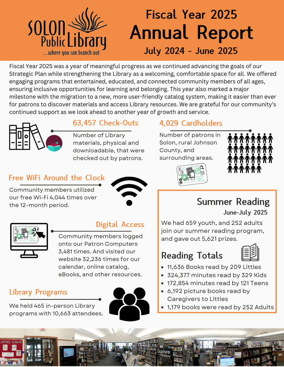 4,029 Cardholders - Number of patrons in Solon, rural Johnson County, and surrounding areas.